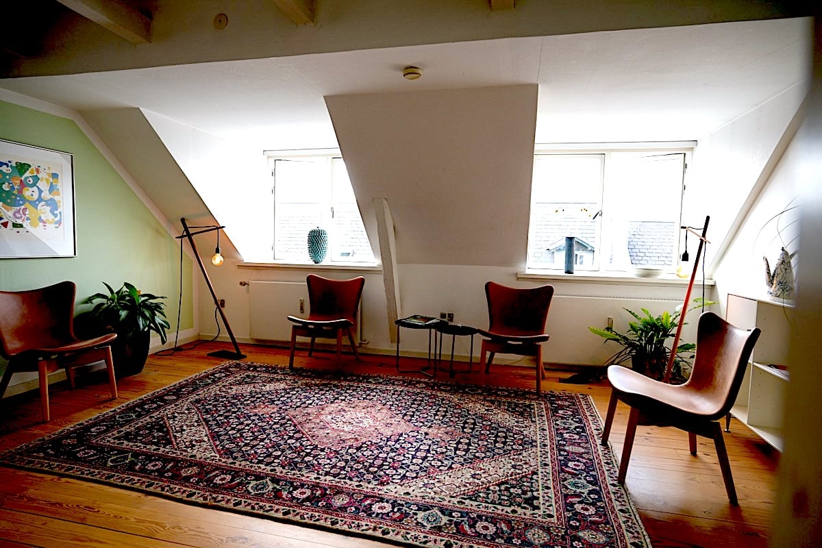 Coaching- og terapisamtaler bliver afholdt i behagelige lokaler tæt ved Odense Teater, Kongens Have, gågader og med gode bus- og togforbindelser ved Odense Banegård hos os: